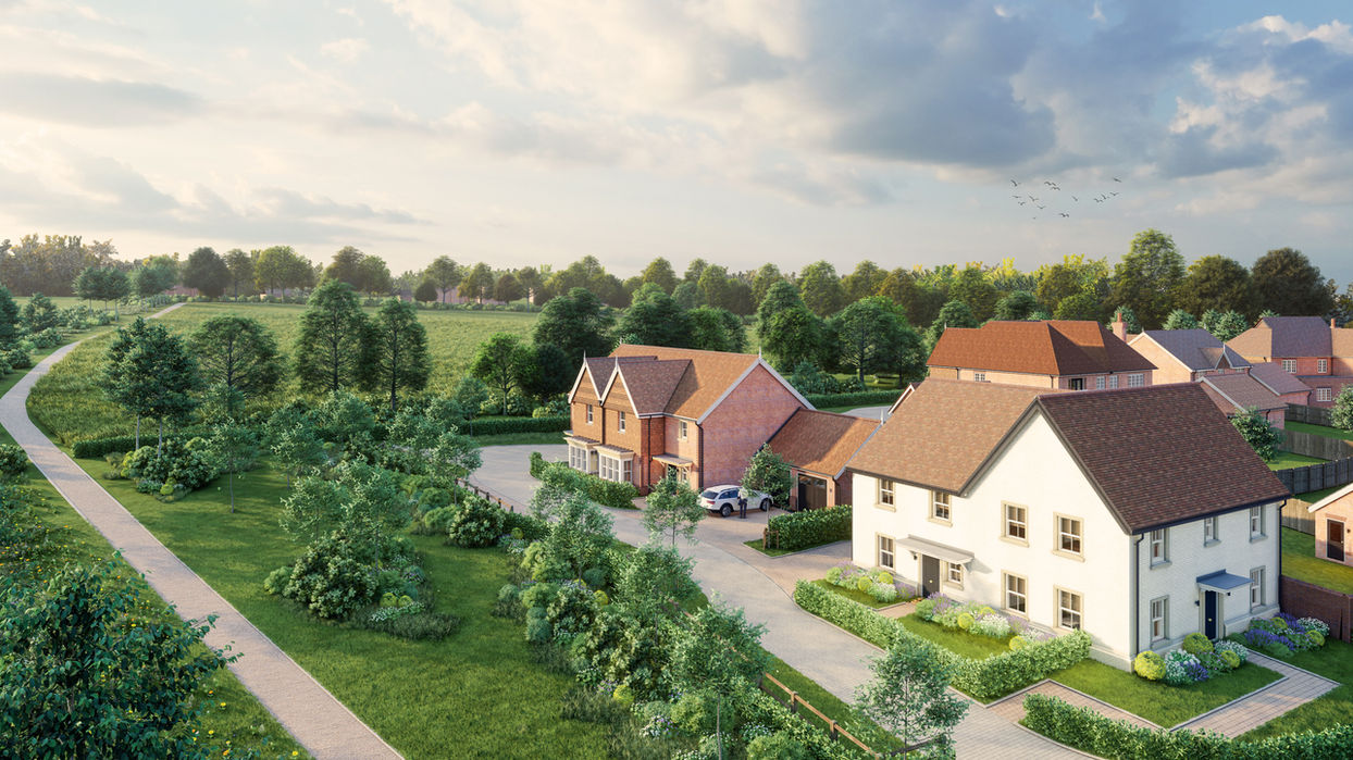 Our bespoke masterplan for Buxted Park integrates heritage sensitivity with contemporary urban design. Key views over historic assets are framed by strategic green corridors, while a respectful buffer zone preserves ancient woodland. Development is concentrated in the east, echoing Buxted’s built form. The western site is restored to parkland, reinforcing the rural character and enriching the setting of Harrock House. Thoughtful boundary treatments and improved footpath connections ensure minimal impact, creating a place where landscape and community thrive together.