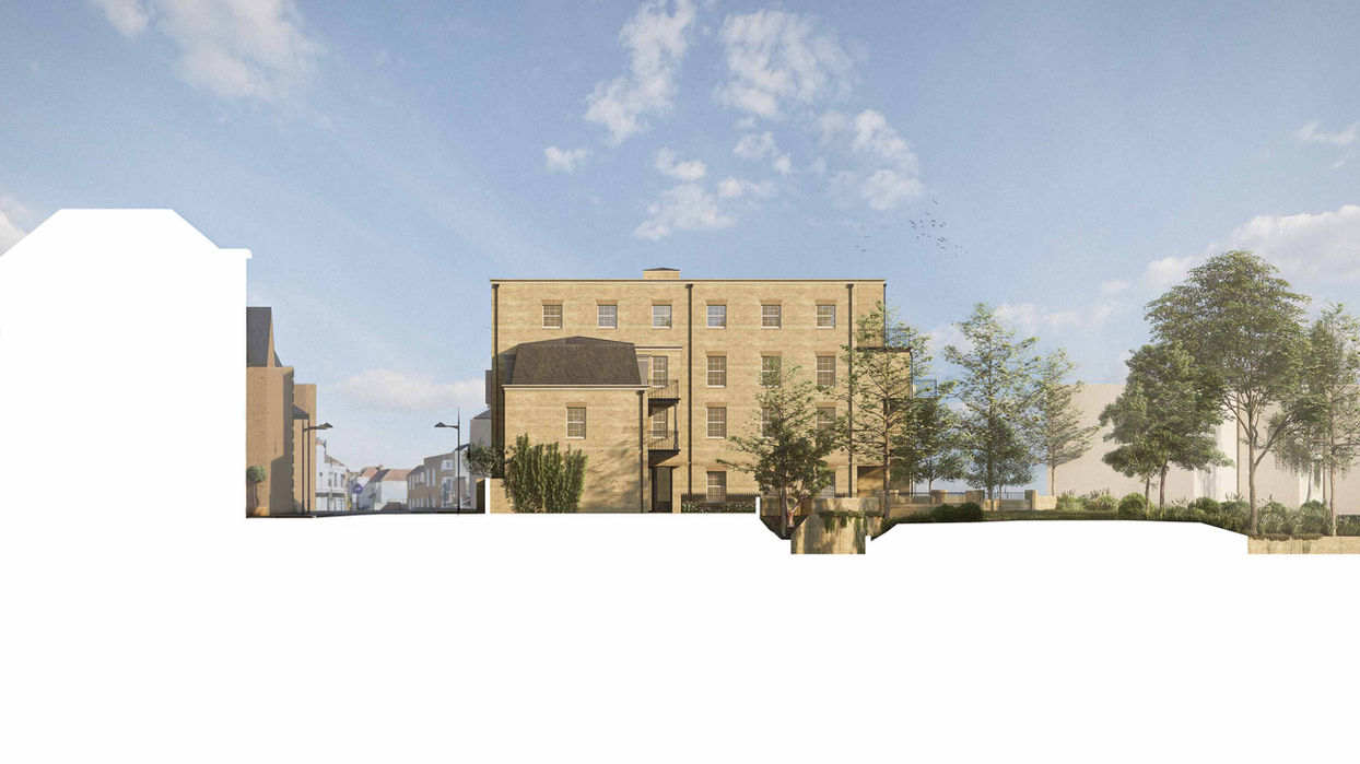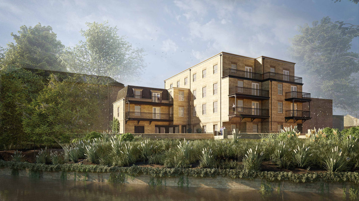 This exciting redevelopment of the former Two Rivers Bar introduces a vibrant mix of uses, combining a flexible ground-floor commercial space with sustainable 1- and 2-bedroom homes above. A connected side wing creates a covered drive-through, ensuring smooth access to parking while respecting vital flood protection measures. Thoughtfully designed flats offer views over Church Street and the riverside, while the layout enhances access, includes dedicated parking, and promotes cycling with secure bike storage. Green spaces and landscaping enrich the site’s ecology, and the scale and proportions of each plot are carefully matched to the surrounding heritage buildings.